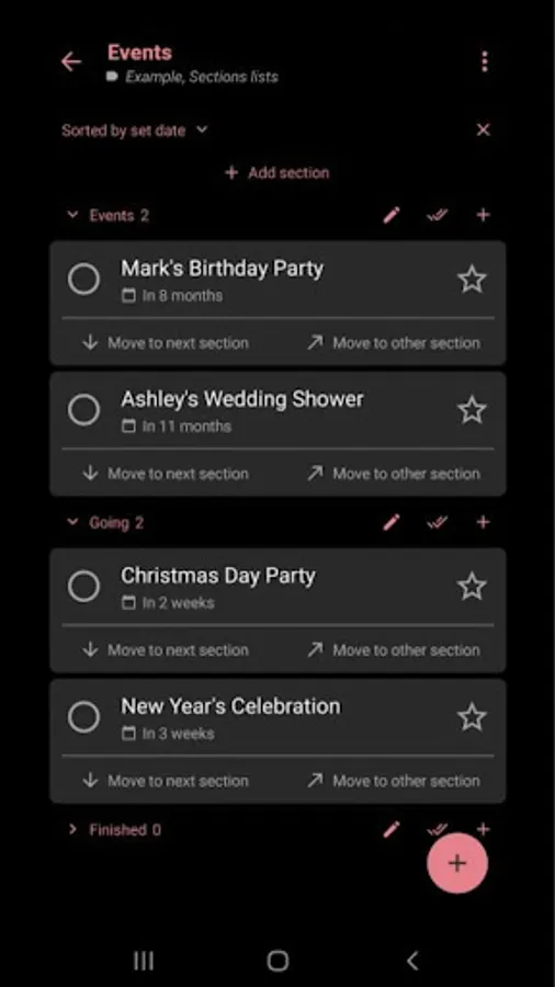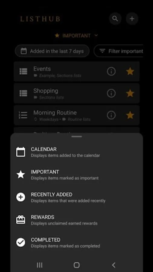Sort by planned, important, recently added, or completed items!
