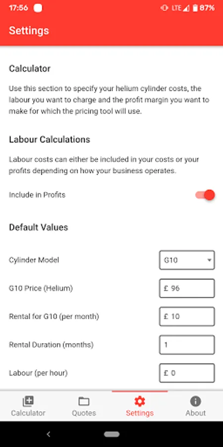 You can save your preferred helium cylinder size from within the settings and then the calculator will calculate the cost of the balloon incorporating the amount of helium used, the values used are for estimation purposes only.