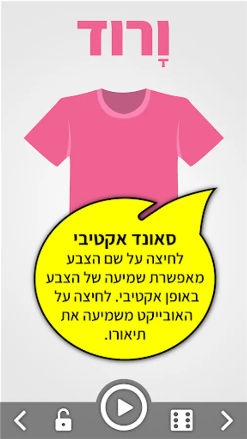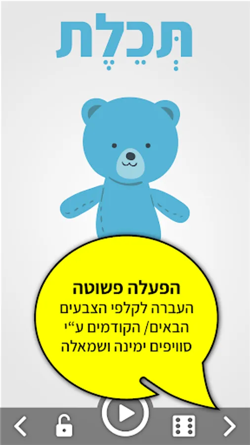 - Repeat play of the card in Hebrew - Clicking on the dotted name will play the name of the object displayed in the Hebrew language again