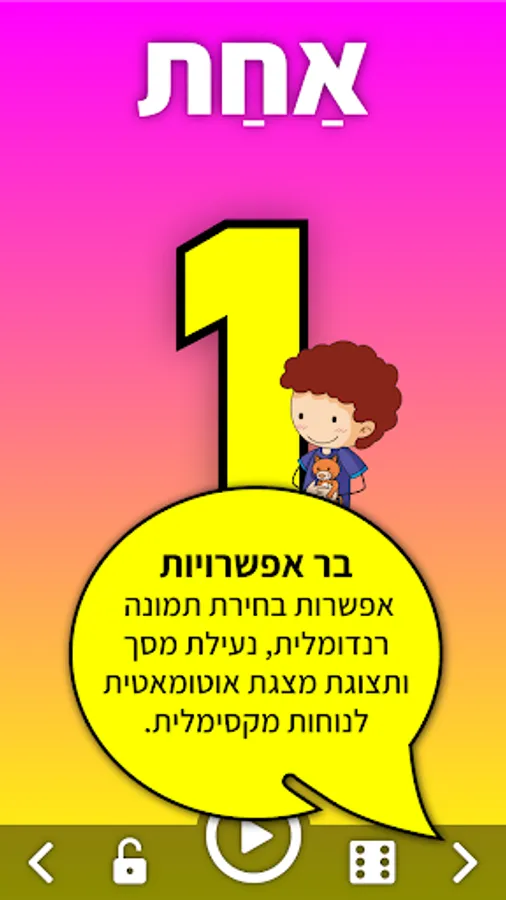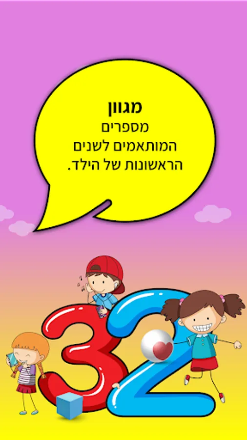 Alef - Learning Numbers for Preschoolers is a free and basic widget that helps young children and toddlers learn and memorize the world of numbers by using illustrations and literature and their names in Hebrew.