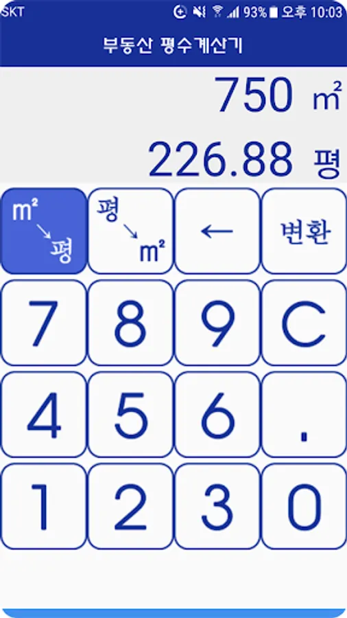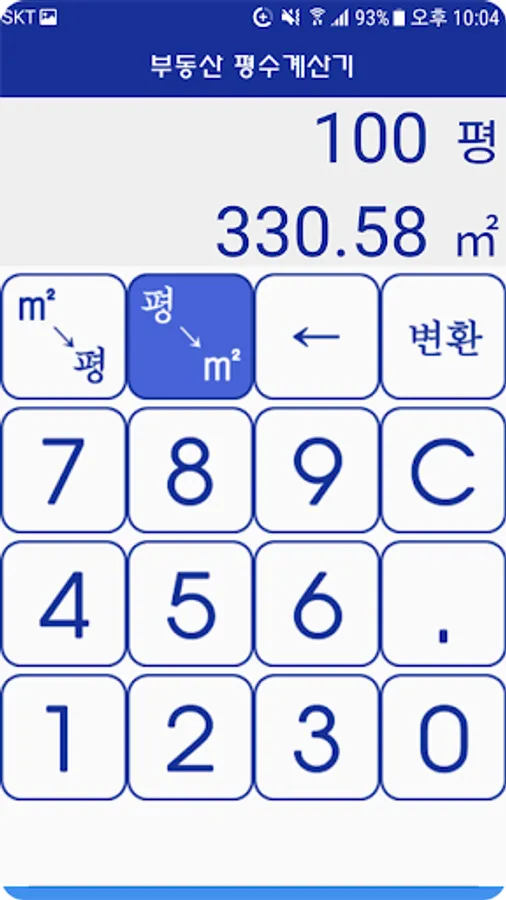 It is a calculator that can easily convert the area of real estate to square meters (㎡) and pyeong.