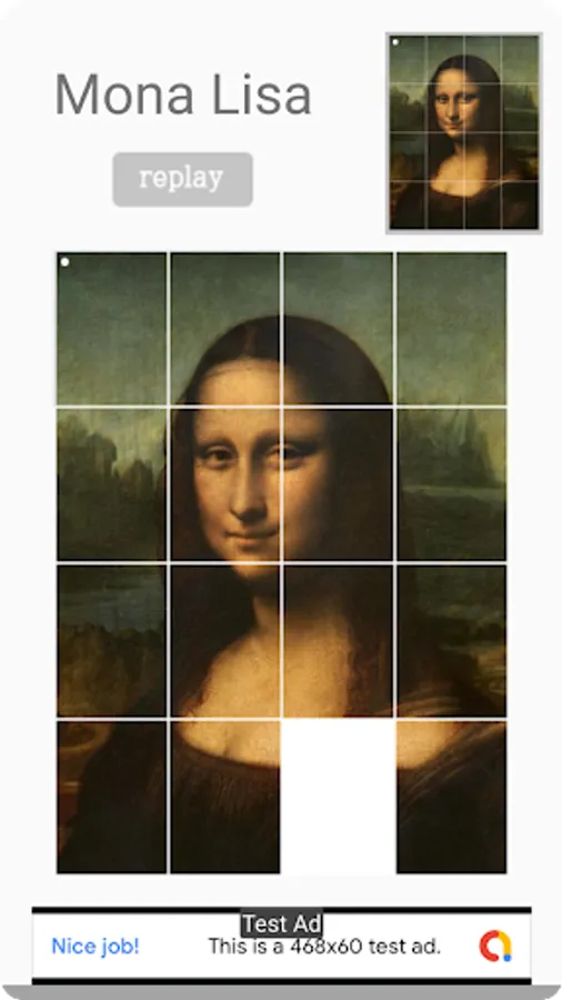 It is a sliding puzzle game that you can enjoy while watching the pictures of Mona Lisa