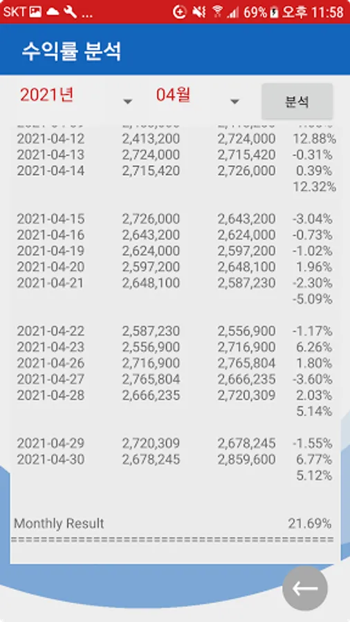 The final asset that has passed the entered investment period can be calculated and checked.