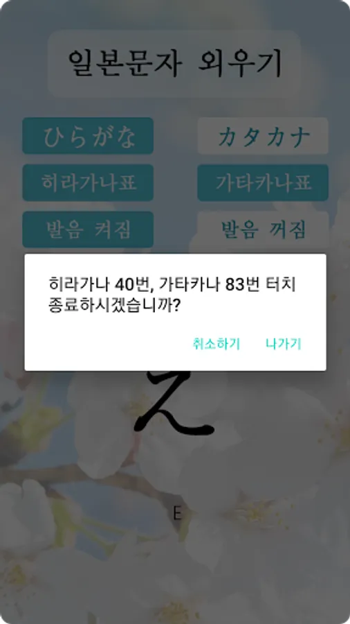 Touching this button at any time during the course will switch to Hiragana Learning Mode.