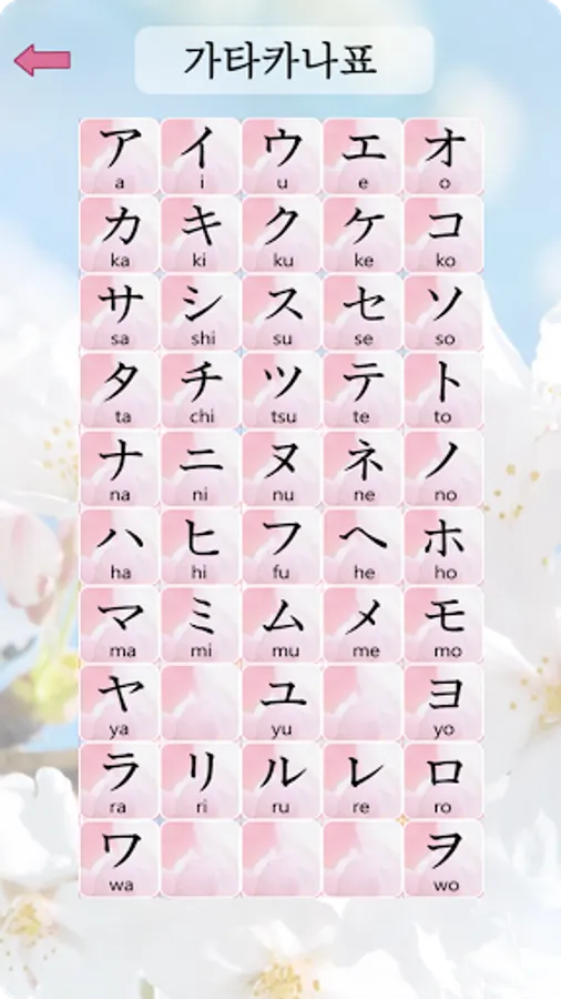 4. Katakana Table Button-Moves to the screen of 50 Katakana tones and displays the entire Katakana.