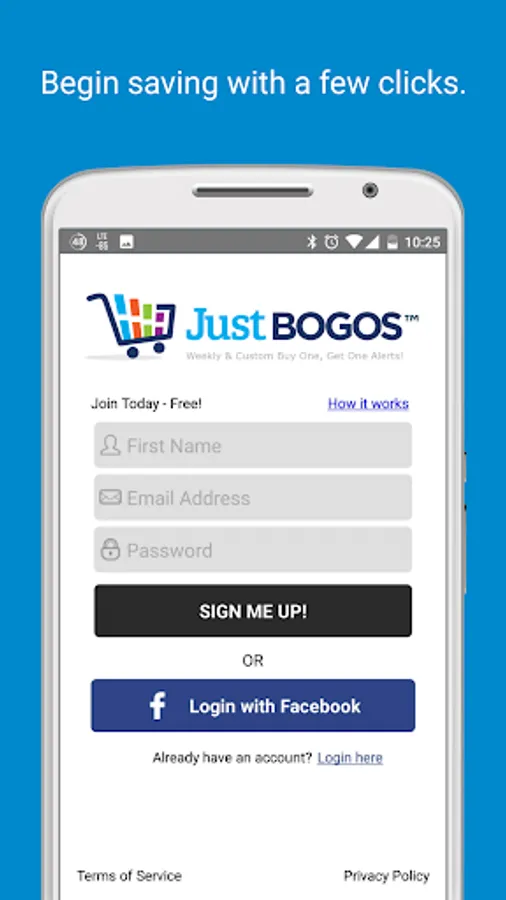 When you download and sign up with the Android app, an online account is automatically created for you with all of the same information as the app. This means your settings, ALL BOGO list, Favorites and Shopping List can be accessed and updated at any time through the app or website.