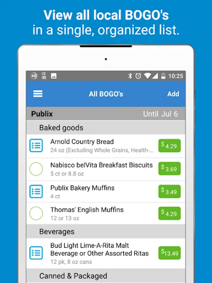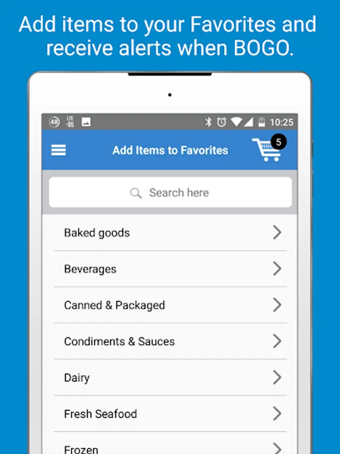 Add your favorite or frequently purchased groceries to your list of Favorites and receive custom alerts when those items go BOGO. Love ice cream or a particular brand? Add them to your Favorites and never miss your preferred BOGO sales again.