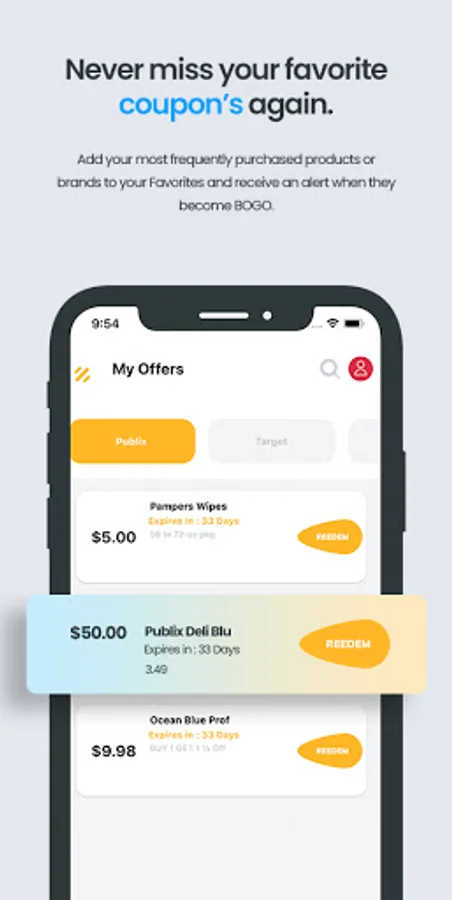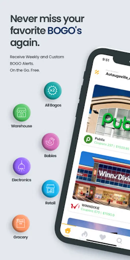 Add your favorite or frequently purchased groceries to your list of Favorites and receive custom alerts when those items go BOGO. Love ice cream or a particular brand? Add them to your Favorites and never miss your preferred BOGO sales again.