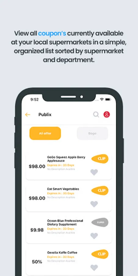 Receive an alert each week when new BOGO’s become available and view the quick-reading, organized breakdown of all new BOGO's. The breakdown can also be viewed in your online account which is created when you sign up with the app.