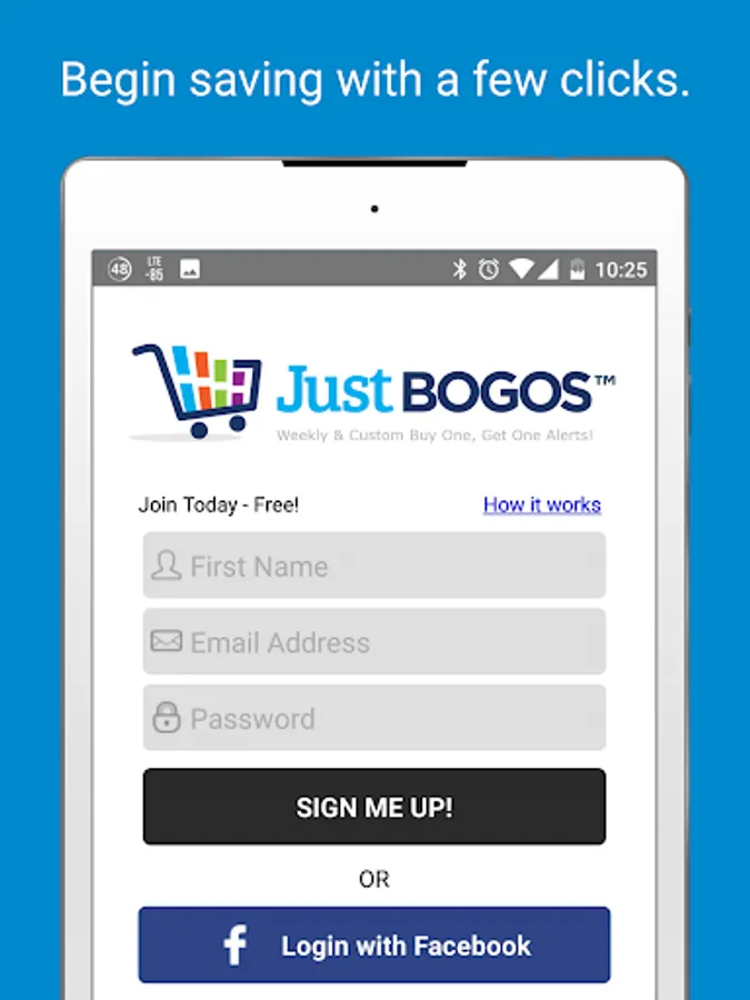 When you download and sign up with the Android app, an online account is automatically created for you with all of the same information as the app. This means your settings, ALL BOGO list, Favorites and Shopping List can be accessed and updated at any time through the app or website.