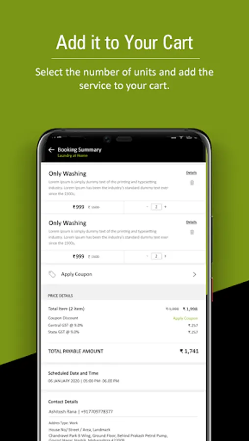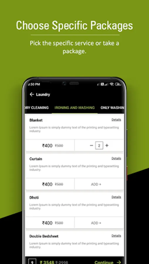 Choose from a set of laundry services like dry cleaning, ironing, only washing etc.