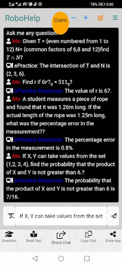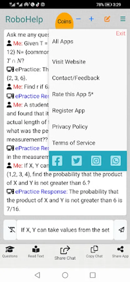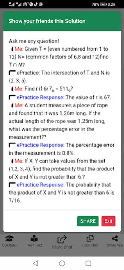 - Share questions and app to friends