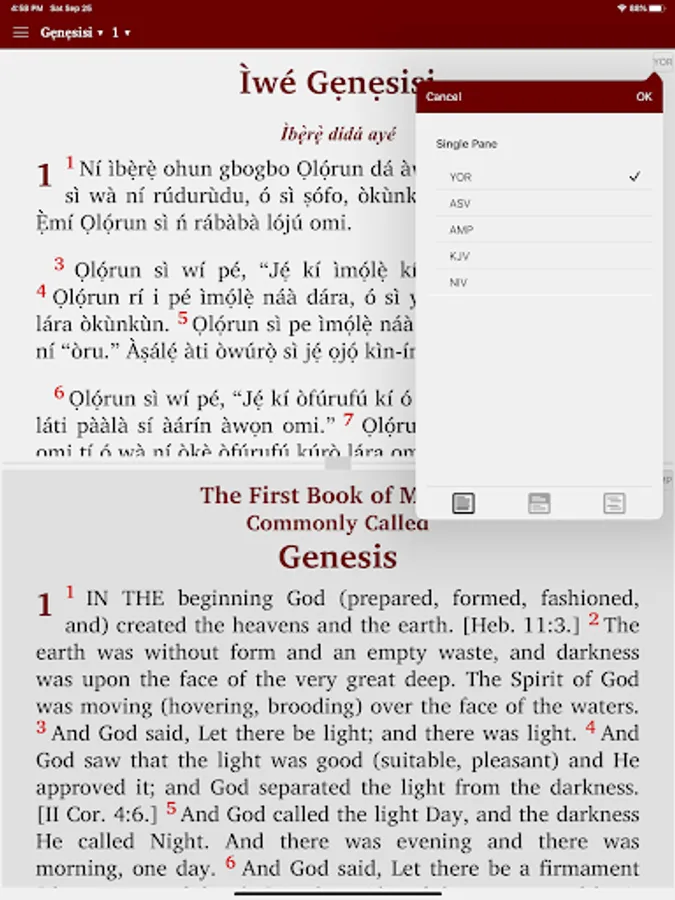 - Access YORUBA, ASV, AMP, KJV, NIV anytime anywhere by swiping screen corner
