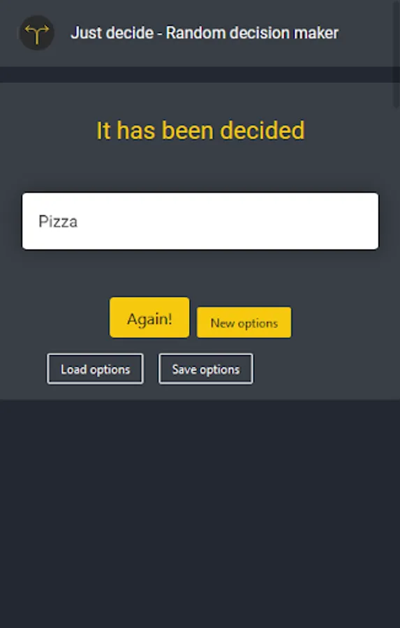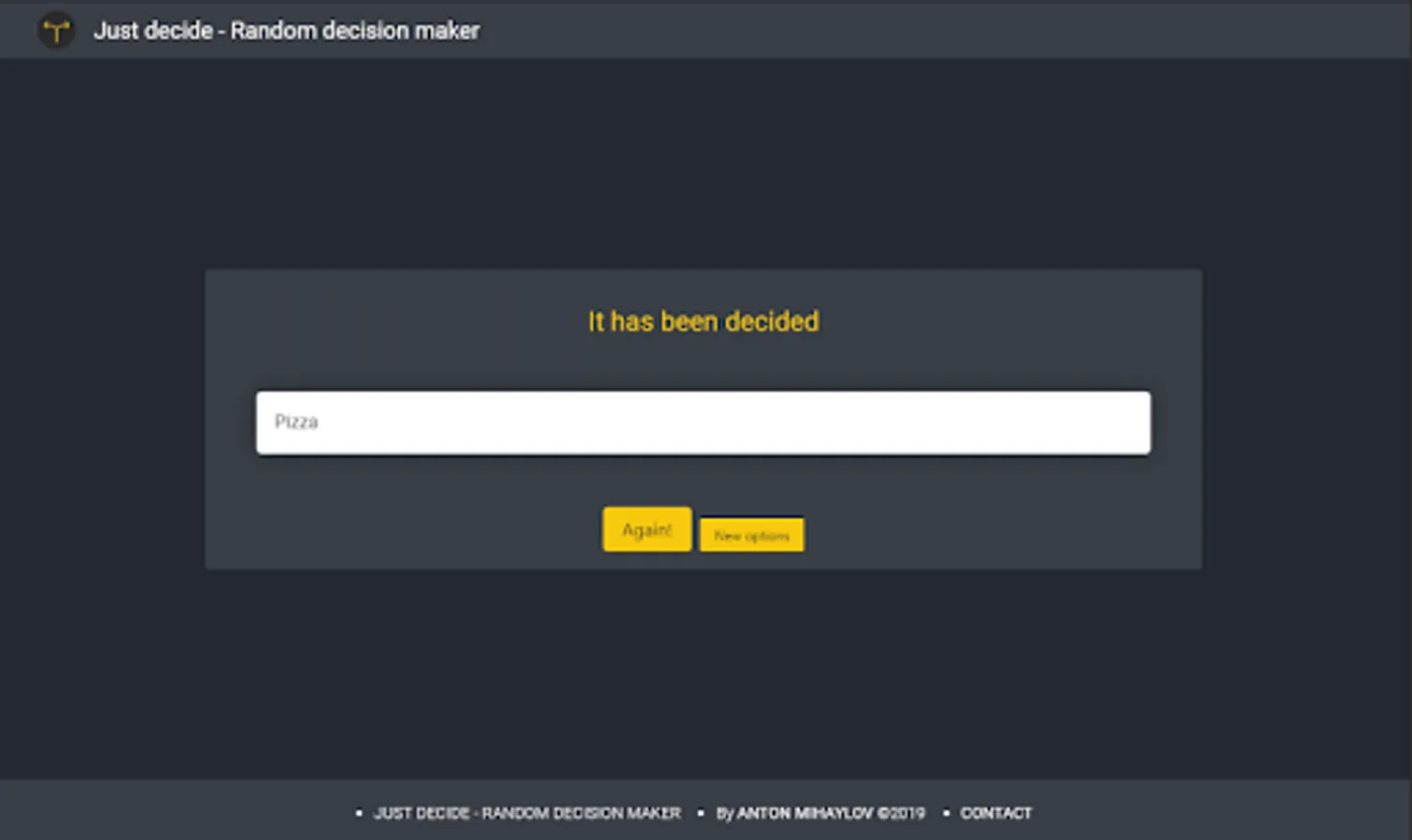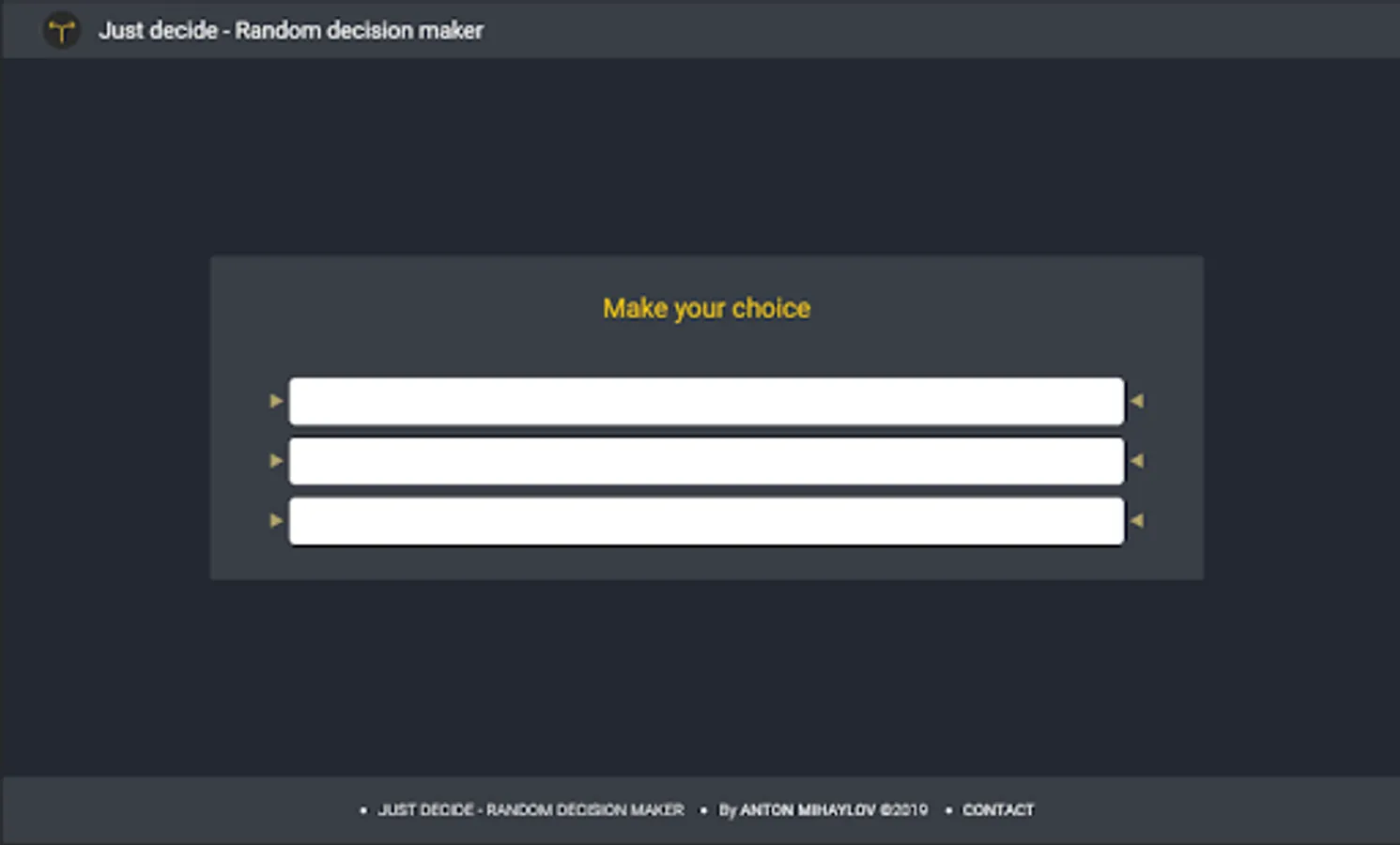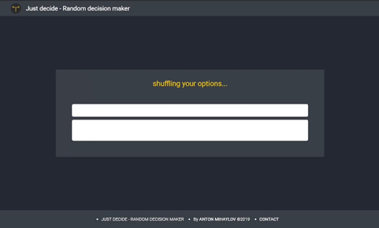 Just decide is an app that makes it easy to make random decisions. Wondering where to go to dinner or which movie to watch at the cinema? Stop sweating it and put it in the app, where you can choose at random an option.