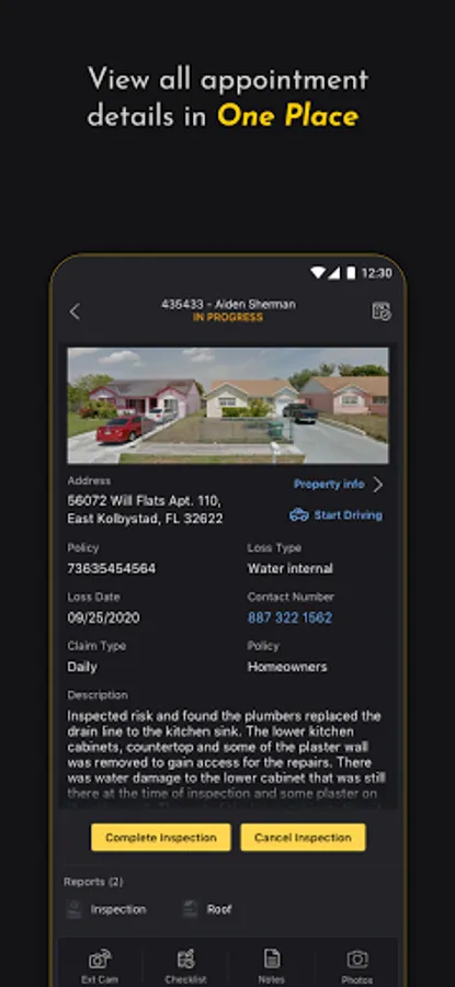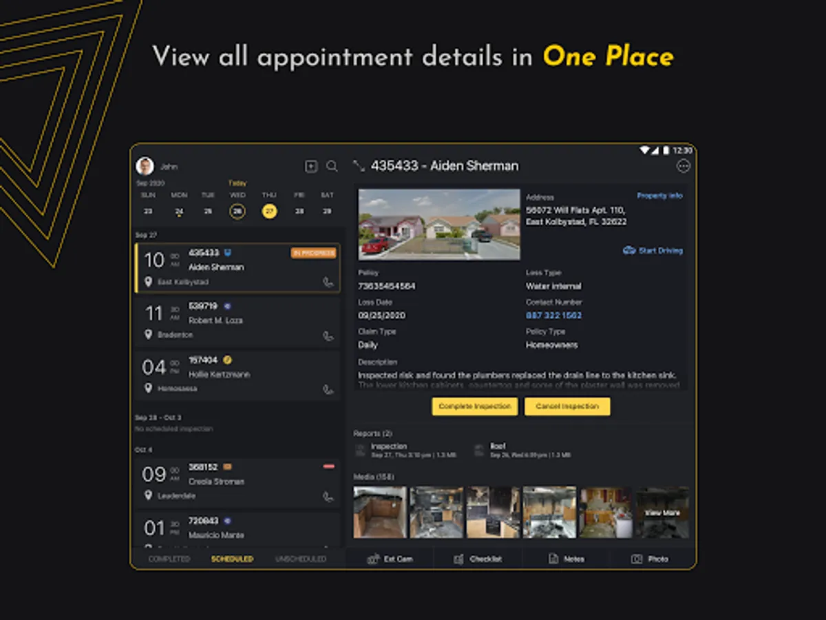 5. Navigation – Use JustEZ navigation with options like shortest path or inspection time to traverse all the claims scheduled for a given day.