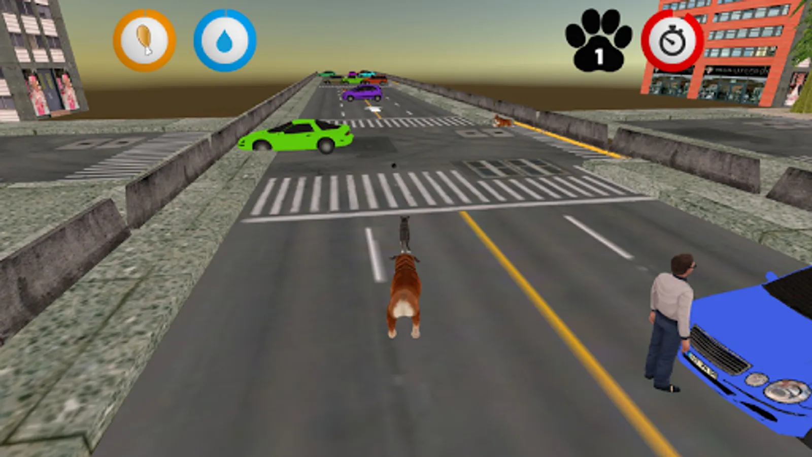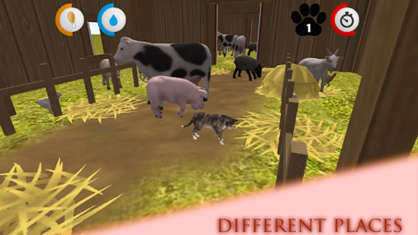 There are two main maps and 15 missions. The city and farm house. Complete missions by finding your kitties. You are going to get thirsty and hungry. Find food and water as moving on your mission. Watch out for human, cars and dogs in the city and animals in the farm house. There are some hidden places for bonus paws.