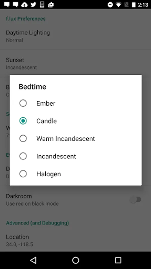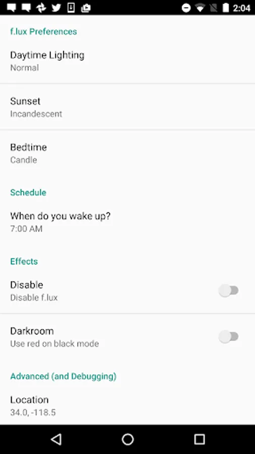 f.lux removes the bright blue colors from your phone to help you wind down at night and returns your screen to normal the next day. This preview version is not a final release. It requires a rooted phone, and otherwise it will not do much. We appreciate your help with bug reports and feature questions.