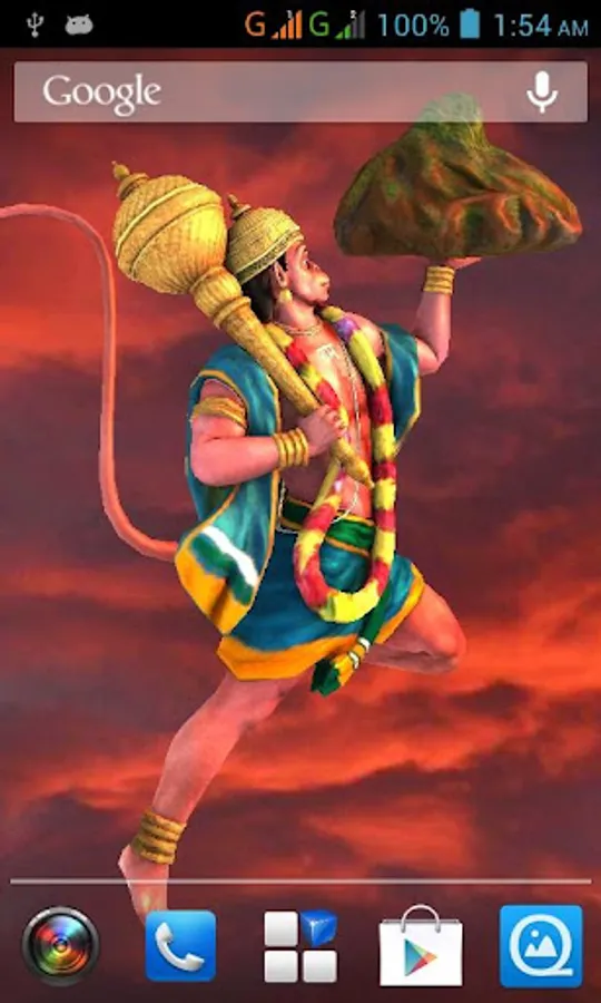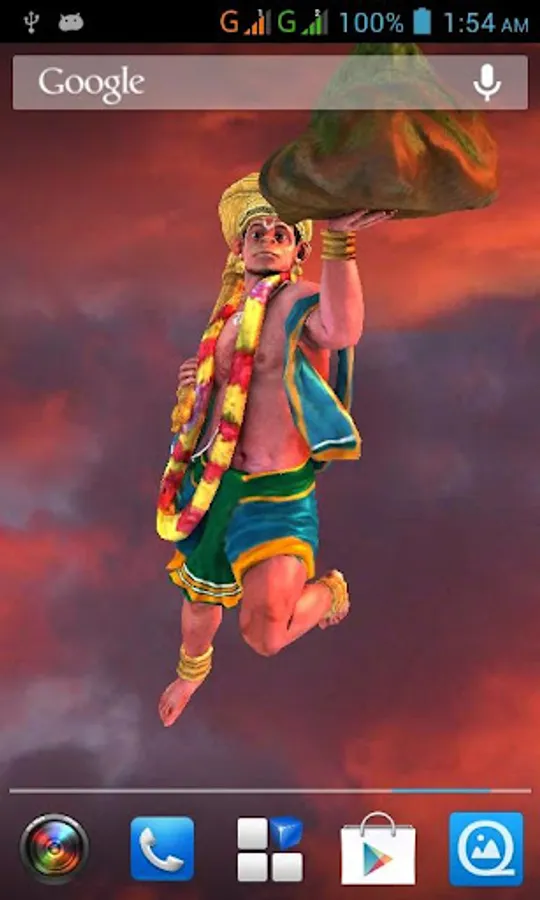 3D live wallpaper depicting Hanuman reacting to gestures.