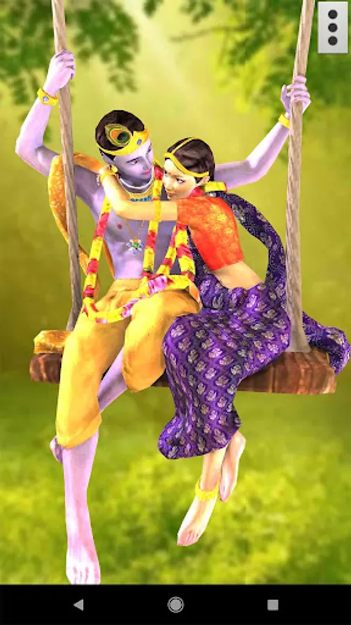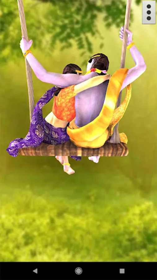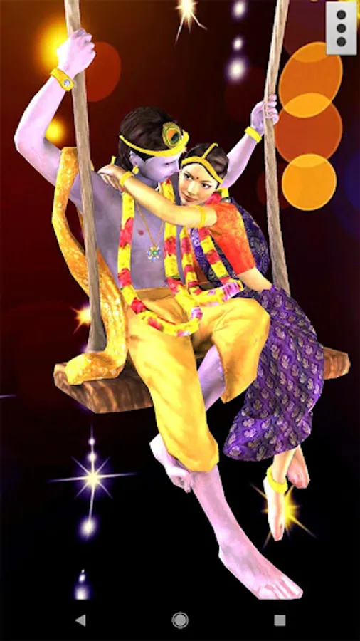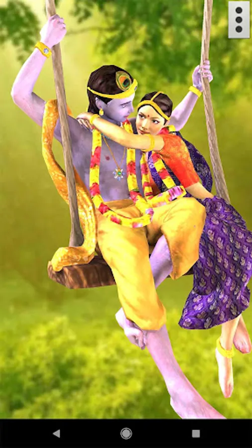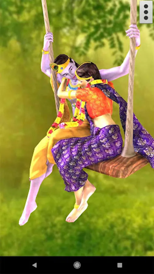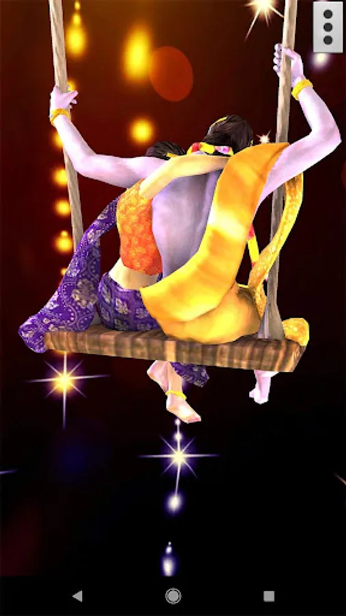 3D live wallpaper depicting Radha Krishna Jhulan reacting to gestures.
