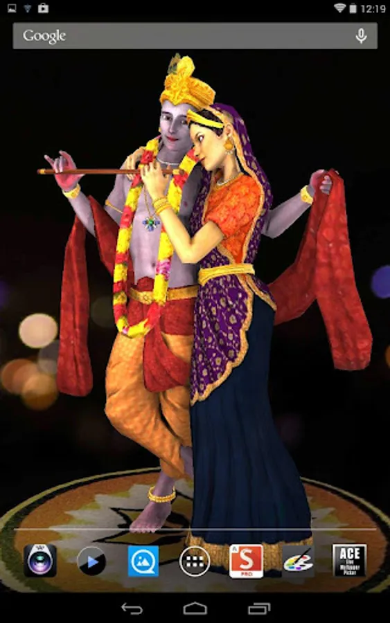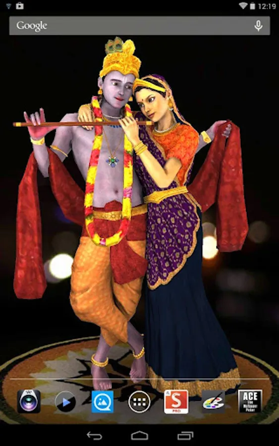 3D live wallpaper depicting Radha Krishna Playing Flute reacting to gestures.