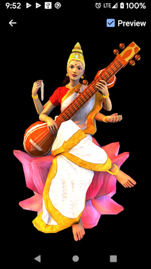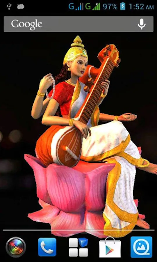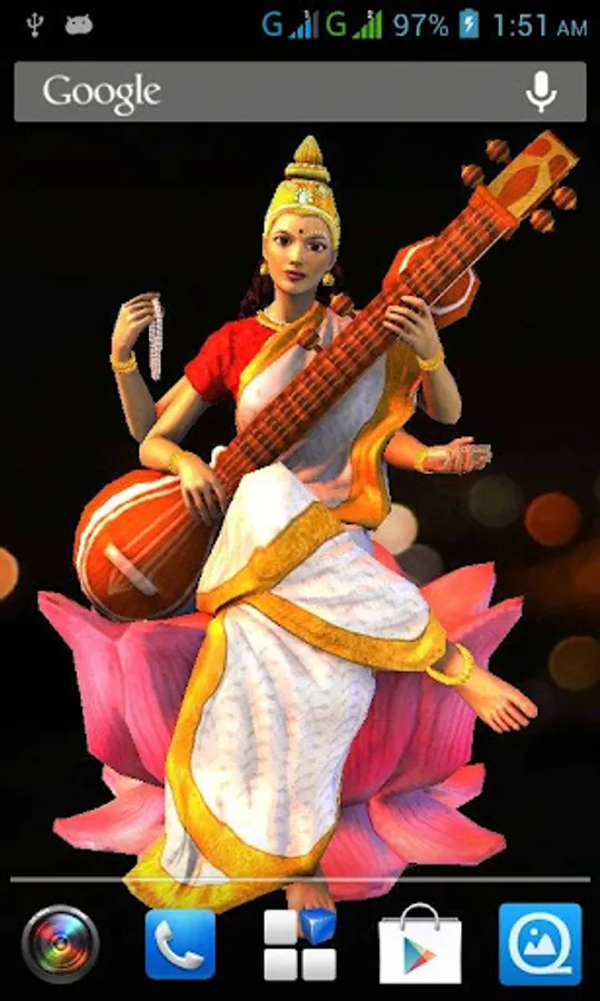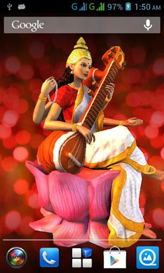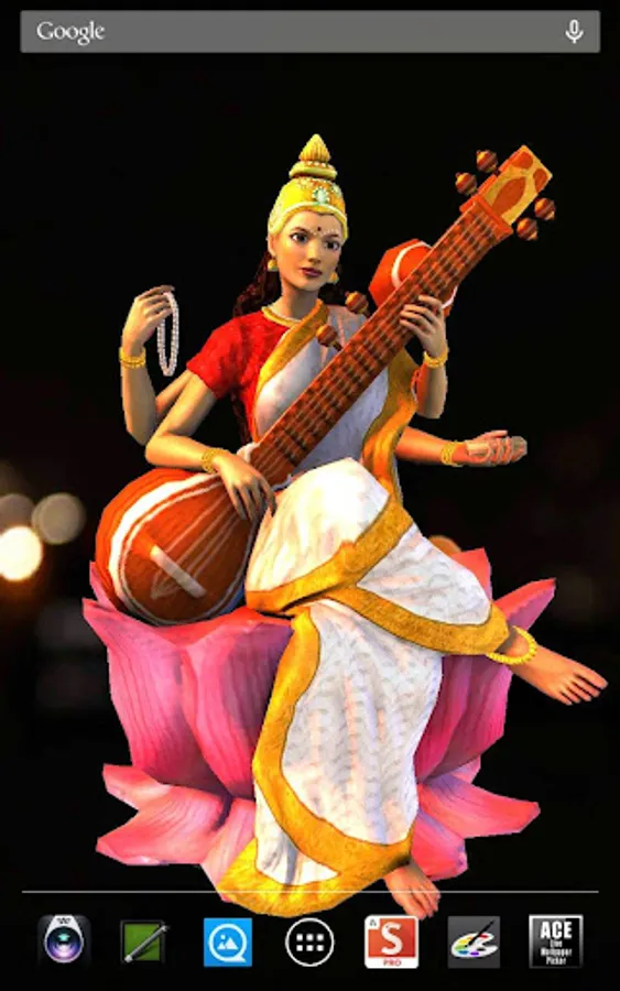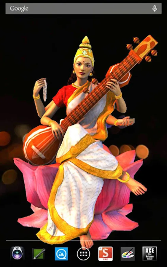 3D Live Wallpaper depicting Maa Sarawati reacting to gestures.
