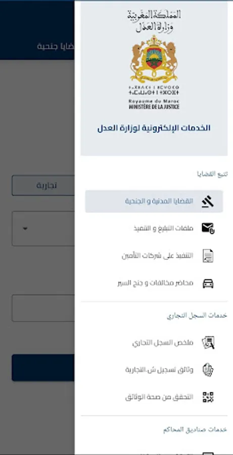 “Mahakim Mobile” is a service judiciary électronique gratuit ouvert aux citoyens offered by the ministère de la justice.