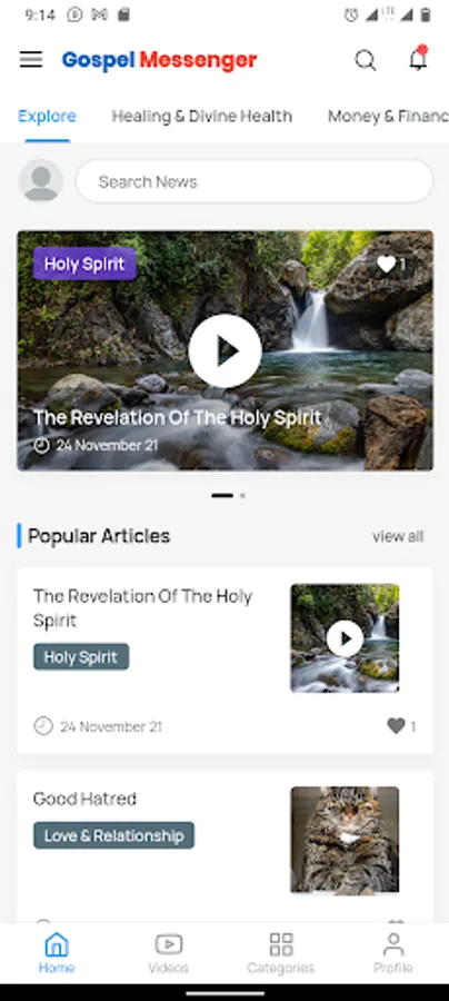 Gospel Messenger Ultra brings you hundreds of anointed texts and video articles of God's Word that reveals the love of God to humanity through Jesus Christ.