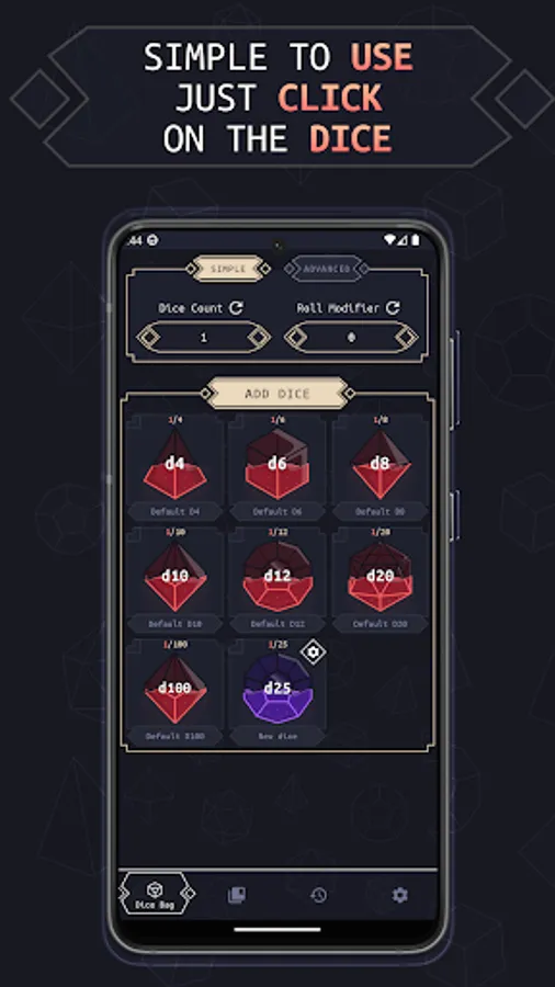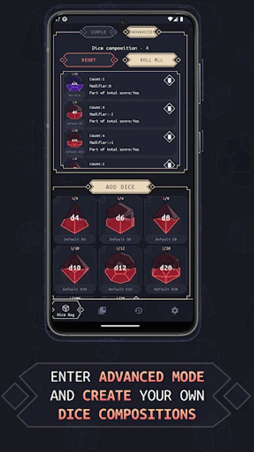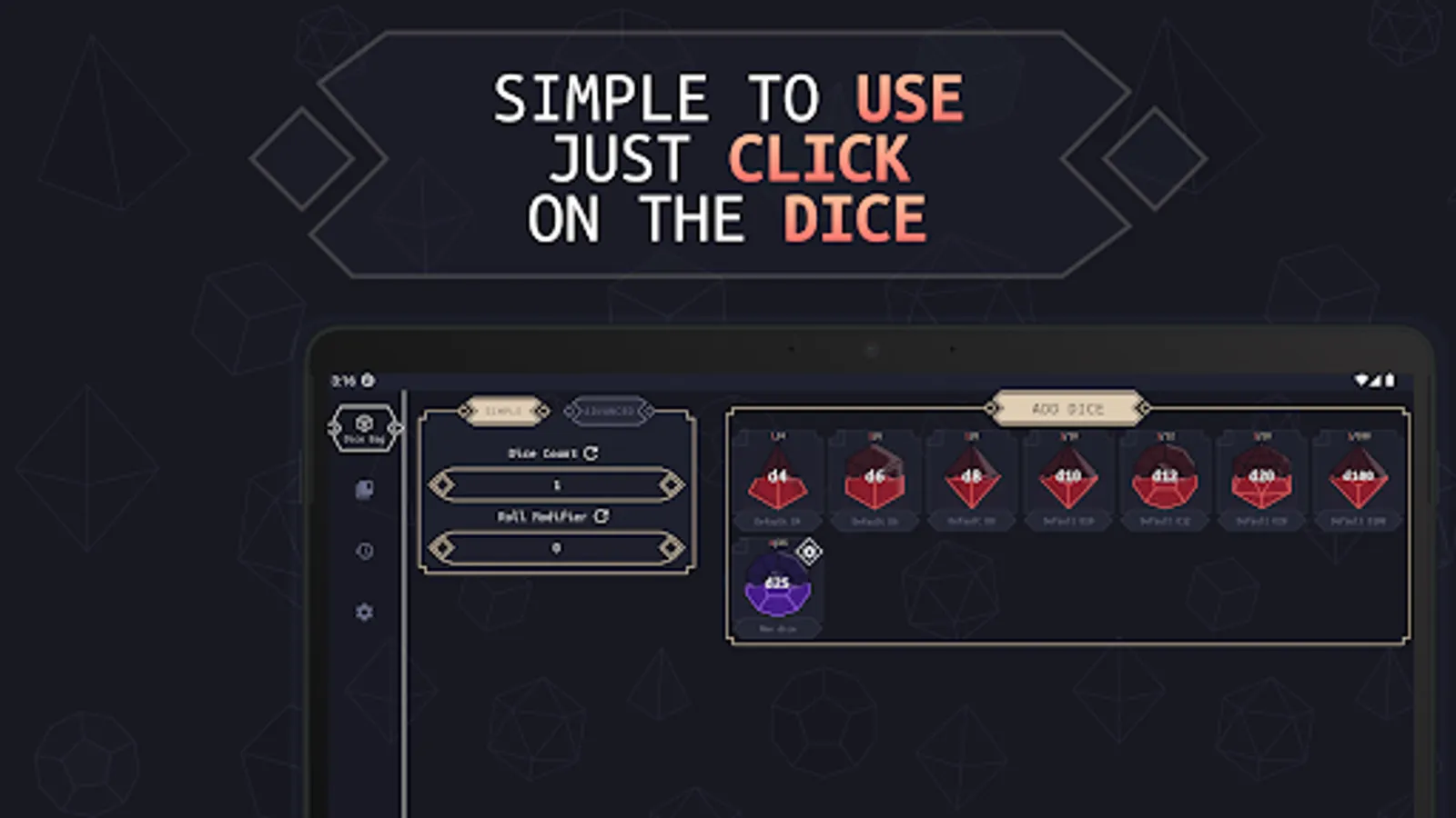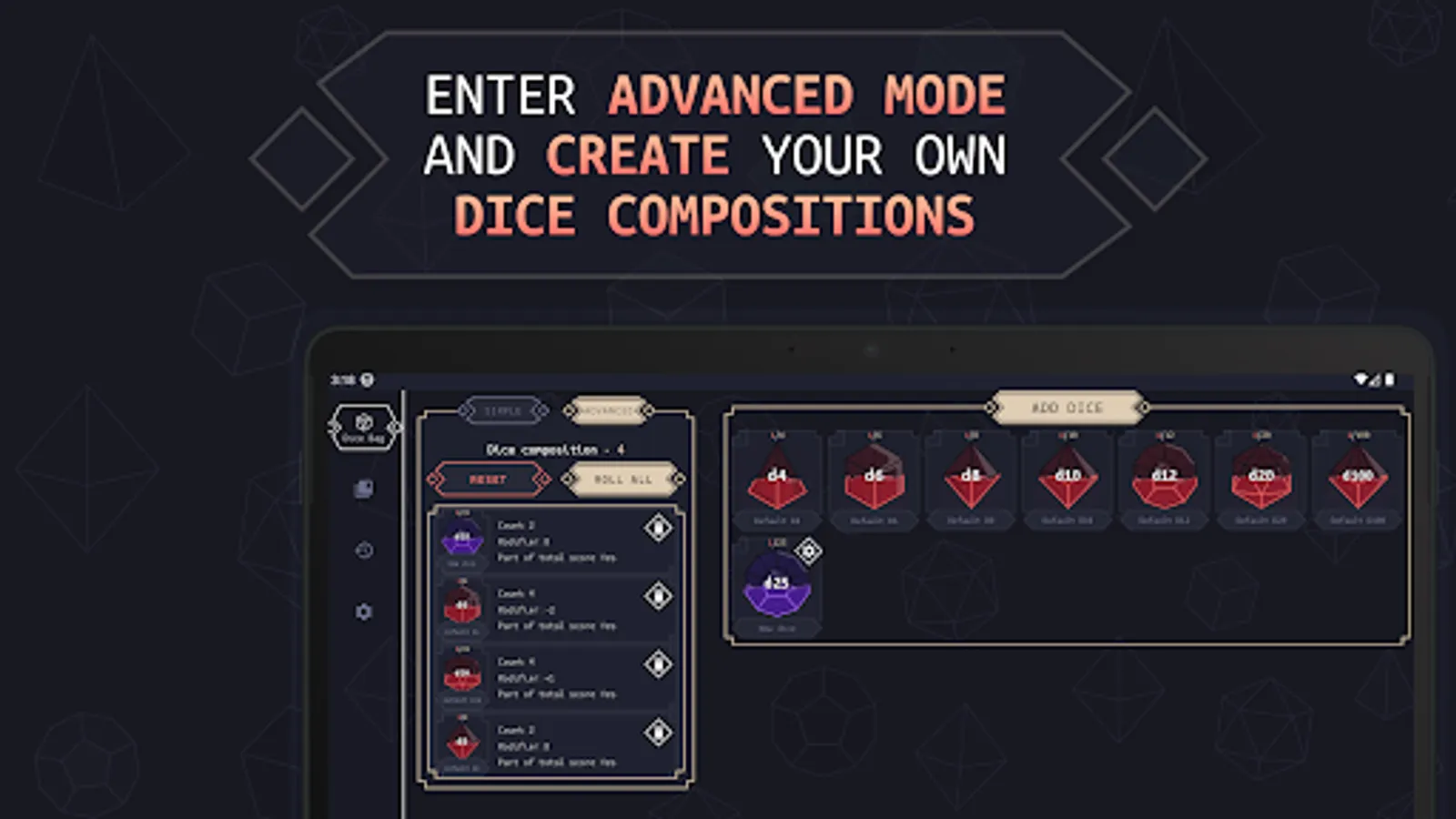 Roll virtual dice or die with ease in Dicely - the ultimate dice roller app for tabletop games. Customize your dice to fit your favorite games and save compositions for quick rolling. Choose from simple or advanced roll modes and view your roll history to keep track of your results. Share your rolls with friends and enhance your roleplaying experience with our dice roller app.
