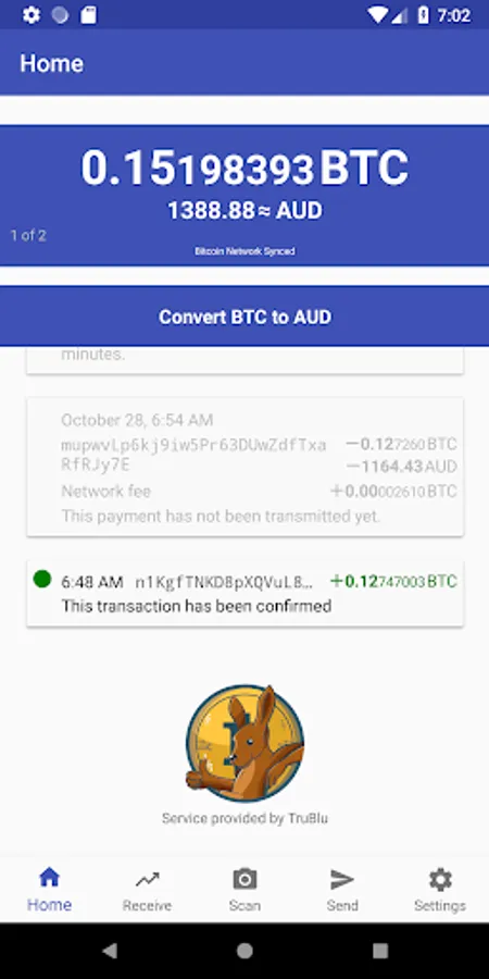TruBlu is an app designed to allow Aussies to easily send and recieve Bitcoin payments then instantly convert it to Australian dollars paid directly to your bank account.