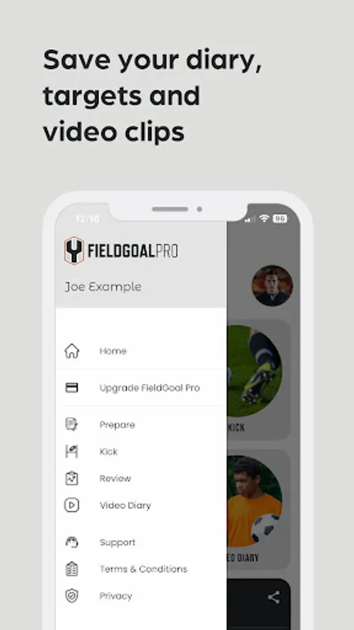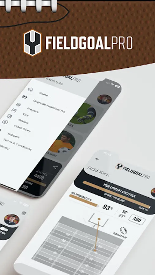 The FieldGoal Pro App provides a complete training partner for players, including: