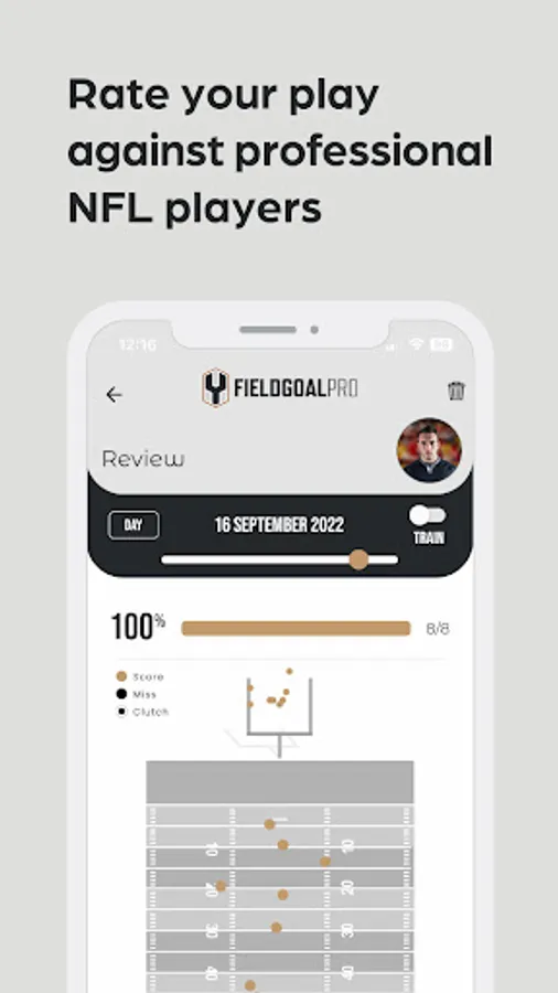 FieldGoal Pro is the only training tool available which can rate your play against professional NFL players. FieldGoal Pro tracks each of your Field Goal kicks, comparing them to the latest statistics from the NFL. This data enables us to work out the probability of scoring from each field location. Your kick performance is then compared to NFL data to see how you rate.