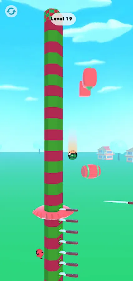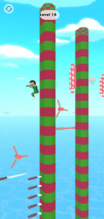 Jump and spring up the tower dodge all the knives that are thrown at you get to the top. Watch out for the different traps put there to stop you winning.
