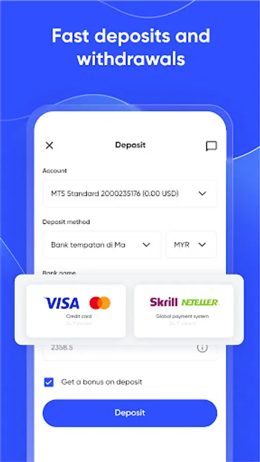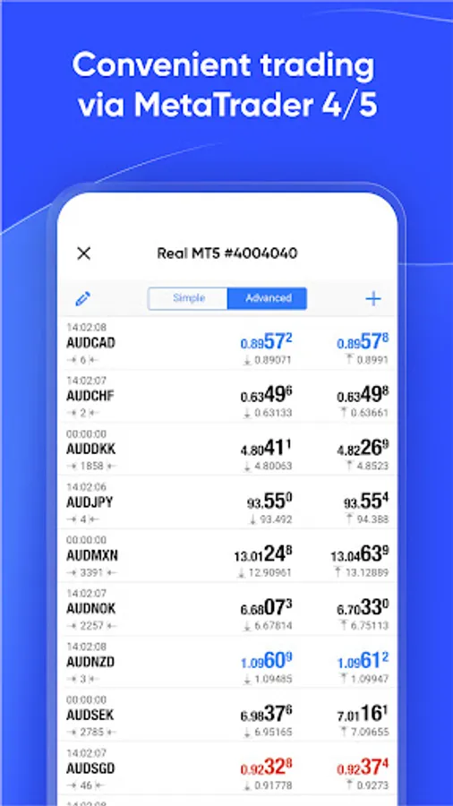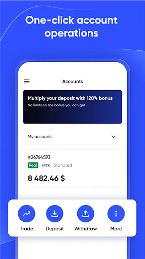Manage your accounts in one click and customize the MetaTrader terminal based on your trading needs. Thanks to the flexible settings of the application and a wide list of available trading instruments, you can: