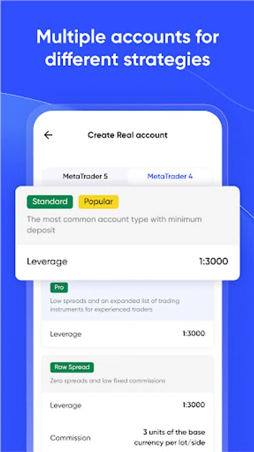 Benefit from different trading strategies that allow you to earn on all kinds of markets within one app! We have accounts that match any demands: