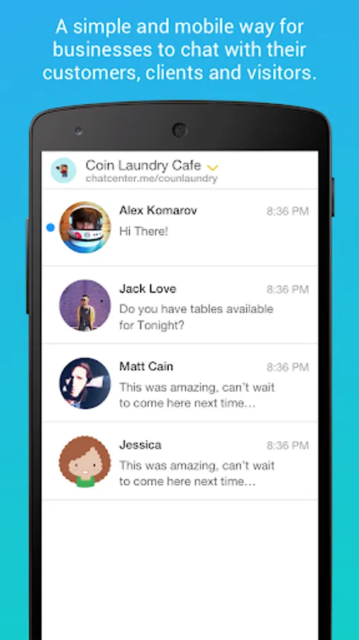 Chat.Center is the best way to help anybody who needs instant access to you to connect with you on your mobile device for Chat. They do not need to install any app, or even have a smartphone. A typical use would be for a customer on your web site needing to ask a question, or a buyer of a specific item needing to ask details about the item. Chat.Center links your web site or email campaign to your smartphone, so you can get the customers query and answer them, no matter where you are.