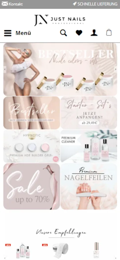 Herzlich willkommen in Ihrem Online Shop für erstklassige Nageldesign und Kosmetik Produkte. Wir von JustNails sind Ihr Hersteller und Lieferant von Top-Artikeln rund um Nageldesign und künstliche Fingernägel. Tauchen Sie ein in unseren Nagelshop, lassen Sie sich begeistern, inspirieren und motivieren. Wir versenden ab einem Warenbestellwert von 180,- Euro VERSANDKOSTENFREI nach Deutschland.