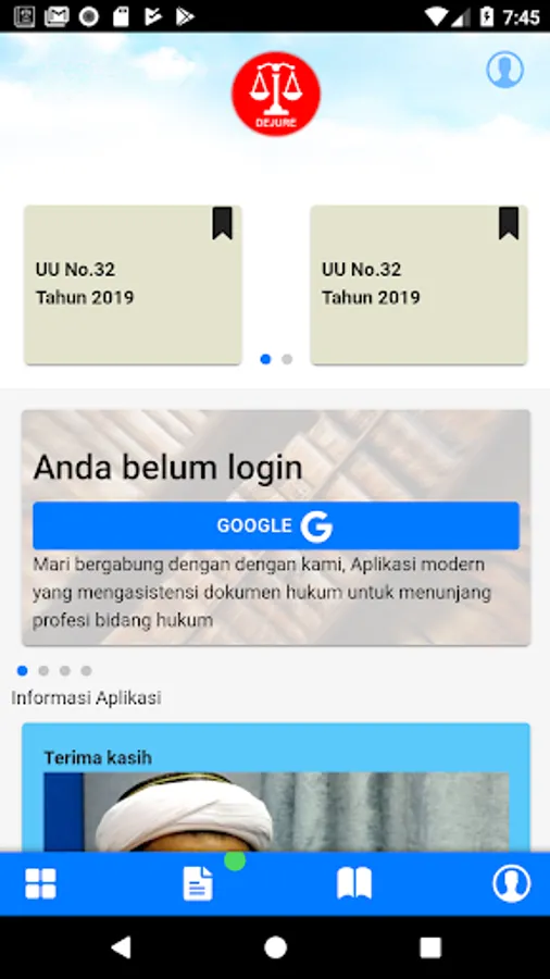 Dejure adalah aplikasi untuk mengkoleksi dokumen hukum secara komprehensif dan lengkap dengan penerapan Asisted Machine Learning yang terus dikembangkan seiring dengan perkembangan teknologi berbasis smart phone.