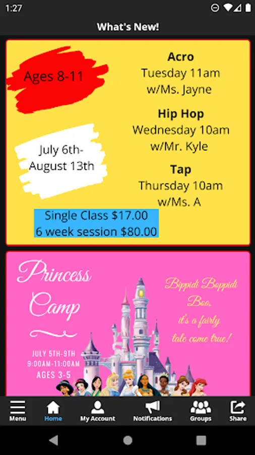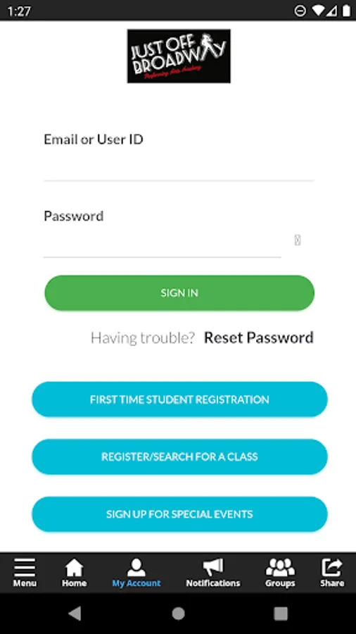 The Just off Broadway app allows you to register for classes, parties and special events and more. The JOBA calendar, social media links, and contact information are also easily accessible from the app.