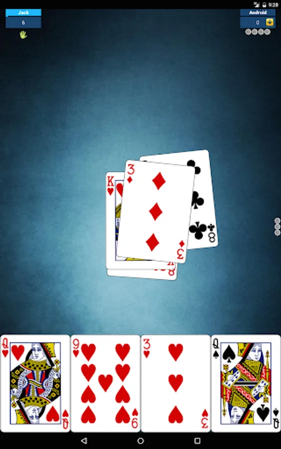 . If each player gets same number of cards at the end of a session the player who played the first card earns 3 points.