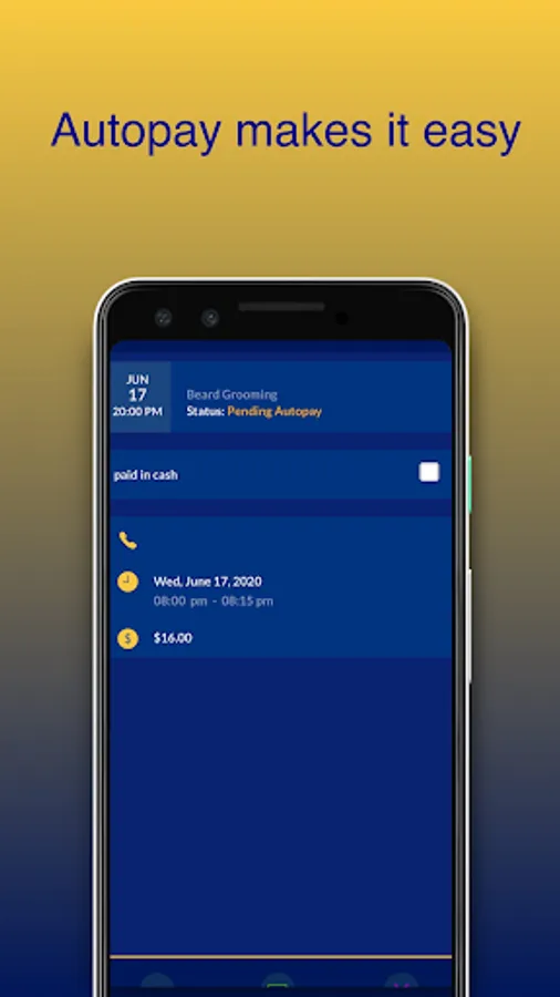 Minimize cash deposits by using autopay. Your client will be billed automatically one hour after their appointment has ended.