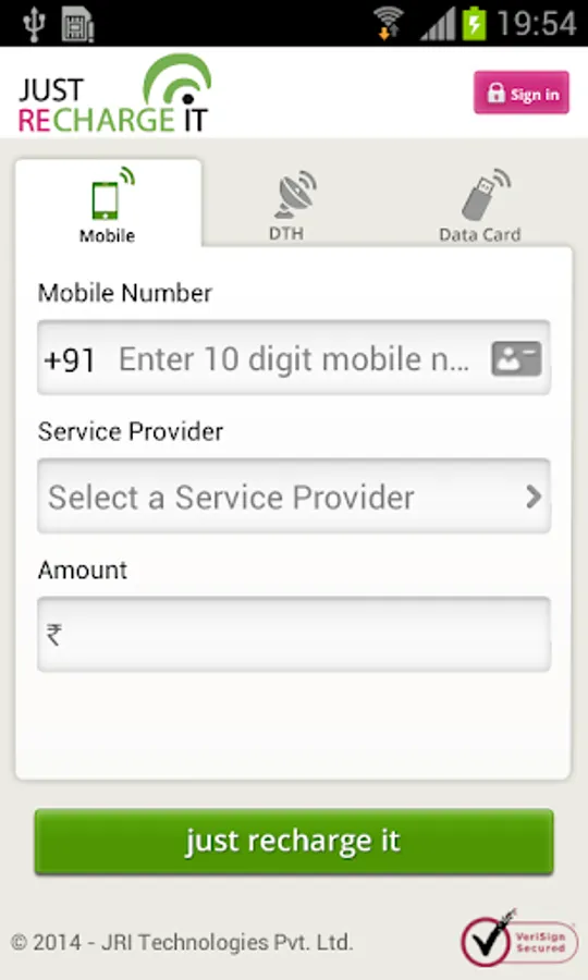 JustRechargeIt platform serves all your recharge needs. Get mobile online recharge, online DTH and online Data card top up through just one panel.