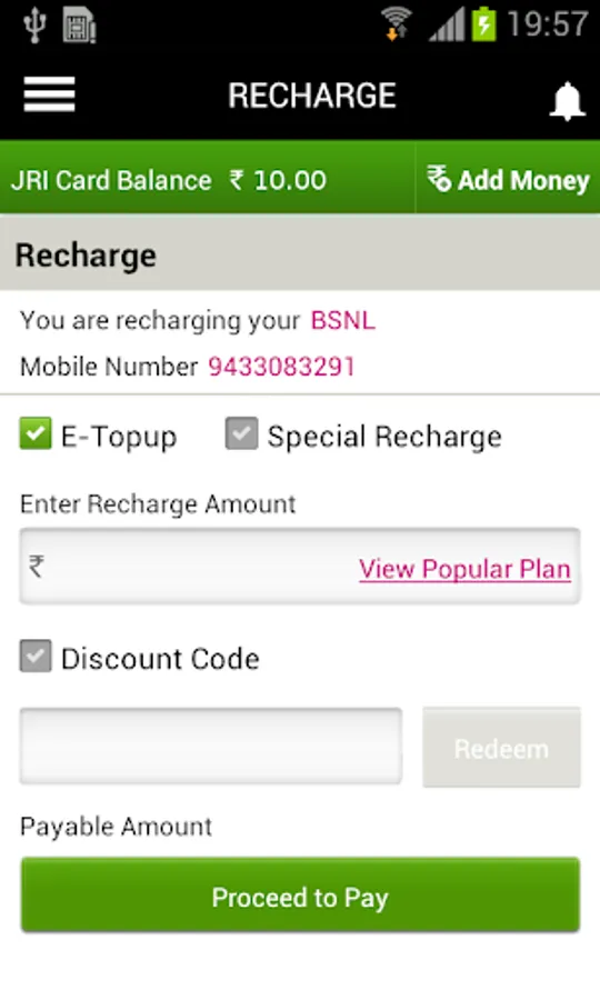 JustRechargeIt makes online recharge of mobile phones quicker and simpler with its mobile recharge app (JRI app) that is convenient, secure and lightning fast. The app provides online mobile recharge, DTH recharge and Data Card recharge with an inbuilt secure wallet in the cloud. From your mobile phone or tablet, you are now able to avail instant talk time and connect to the world!