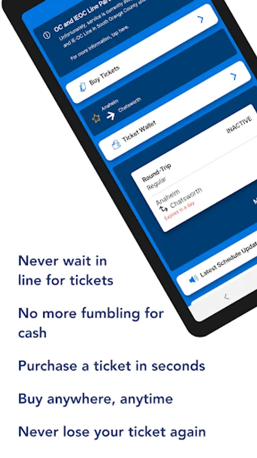 With the Metrolink App, you can securely purchase Metrolink One-Way, Round-Trip tickets, 7-Day, Monthly and Weekend Day Passes in seconds. Purchasing a ticket is easy: select your trip & ticket type, enter your payment card information, activate your ticket prior to boarding and your device is your ticket.