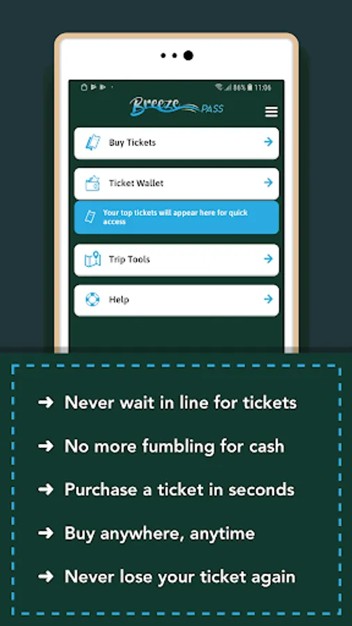 No need for paper tickets or carrying cash when riding The Breeze trolley on Hilton Head Island or Palmetto Breeze Transit across the Lowcountry of South Carolina. - Pre-pay for your trips. - Purchase weekly or monthly unlimited use passes. - See your purchased tickets and passes in your secure wallet.