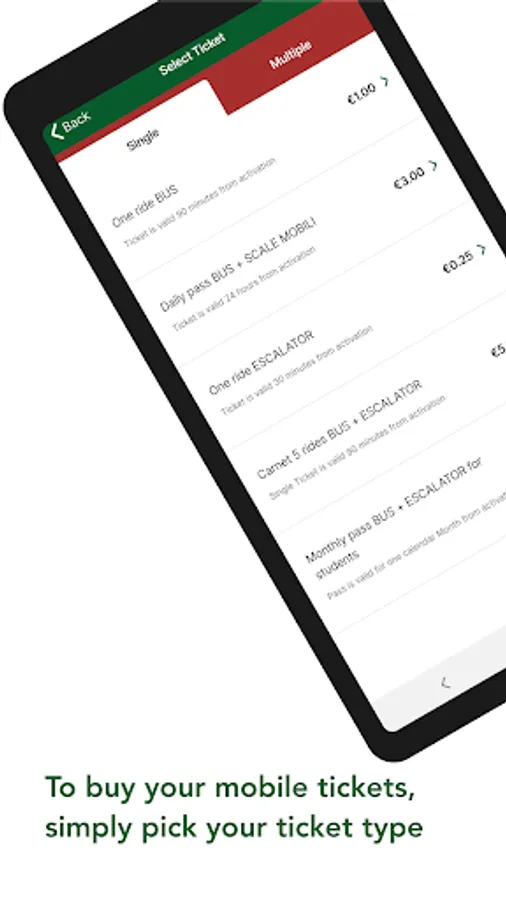 Mobility Ticket app is a ticket machine in your pocket. Buy bus and escalator tickets and passes at any time and wherever you are. From now on:
