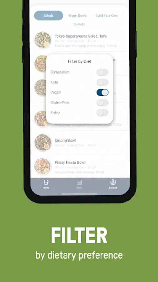 - Choose from over 15 chef-designed salads, wraps, warm bowls, avocado toast + more!