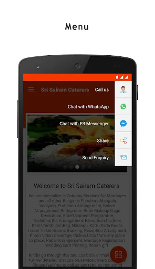We are specialize in Catering Services for Marriages and all other Religious FunctionsMangala Vadiyam ,Prohidam Arrangement, Kolam Arrangement, Bridegroom Bride MakeupStage Decoration, Entertainment Programme, Nichidhartha Arrangement, Receptioin Car,Seer ItemsTambulamBag, Nalangu, Kattu Sada Kudai, Travel Ticket Rooms Booking, Reception Arrangment, Photo Video Coverage, Pickup Drop from any place to place, Padal Arrangement, Marriage Registration, Wedding card Printing, Return gift.