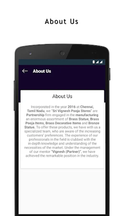 Incorporated in the year 2016 at Chennai, Tamil Nadu, we “Sri Vignesh Pooja Stores” are Partnership firm engaged in the manufacturing an enormous assortment of Brass Statue, Brass Pooja Items, Brass Decorative Items and Bronze Statue. To offer these products, we have with us a specialized team, who are aware of the increasing customers’ preferences. The experience of our professionals in the field is clubbed with the in-depth knowledge and understanding of the necessities of the market. Under the management of our mentor “Vignesh (Partner)”, we have achieved the remarkable position in the industry.