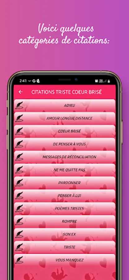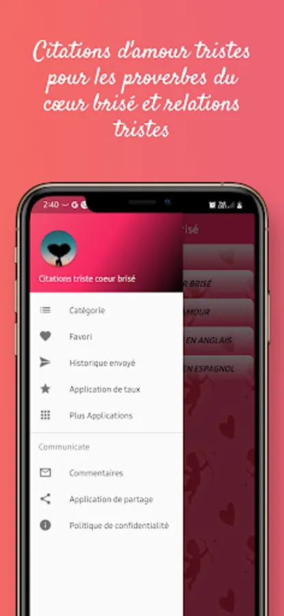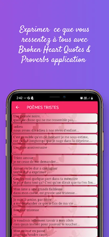 Comprenez comment guérir et faire face au cœur brisé avec l'application Quotes & Proverbes Broken Heart.