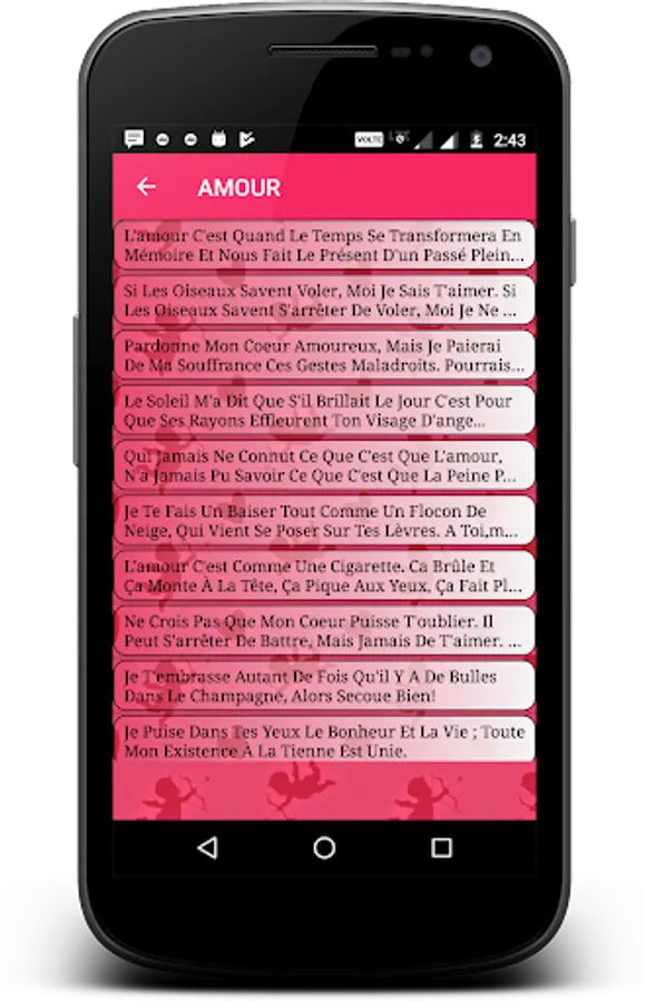 SMS Amour (free application) puts at your disposal more than 10000+ original SMS for: